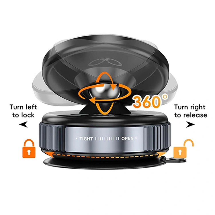 Uso flexível: Este suporte para telefone para carro é fácil de instalar e seguro. Gire a base para a esquerda para travá-la firmemente em qualquer superfície lisa. Gire a base para a direita para soltá-la e removê-la ou reposicioná-la. A junta esférica giratória de 360° permite ajustar seu telefone a qualquer ângulo de visão para máxima comodidade.
