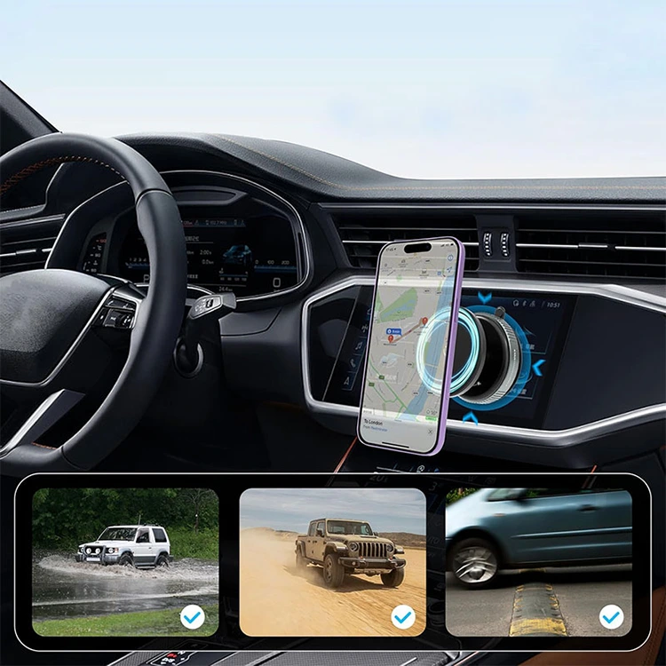 Nosso suporte magnético giratório 360 para telefone, ou suportes modernos para telefone para carro, oferece rotação fácil, fixação firme e um design fino que os motoristas de hoje precisam. É um dos suportes de telefone para carro mais vendidos no mercado e é adequado para instalação em painel ou ventilação. Seguro, elegante e fácil de instalar para a condução diária.