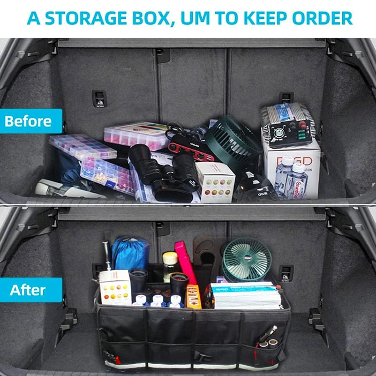 **Grande capacidade expansível** Este organizador pode se expandir para acomodar as dimensões do porta-malas, permitindo ajustar a capacidade do organizador de carro dobrável para transportar os itens adicionais necessários.