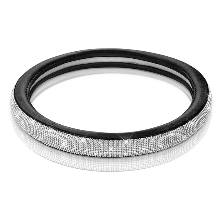 Material avançado: feita de couro PU premium e artesanato de diamante superior, esta capa de volante de diamante avançada brilha mais brilhantemente do que produtos similares com strass de alta qualidade e não machucará suas mãos.