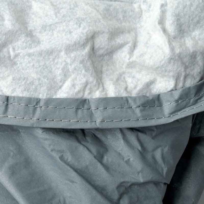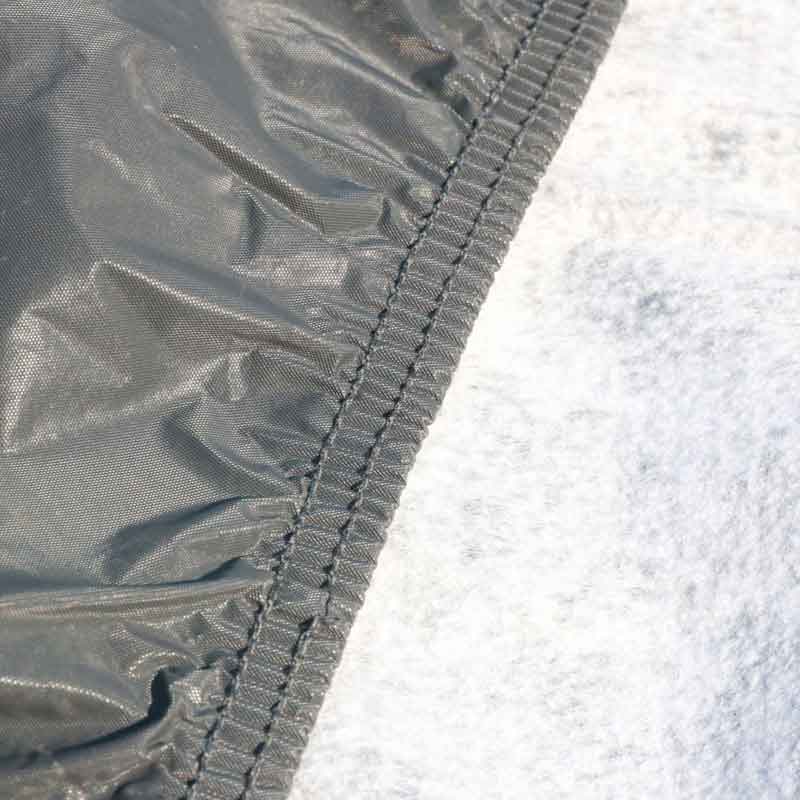 Como profissionalmeia capa de carrofabricante,Fabricação no Extremo Orienteoferece esta meia capa durável para proteção confiável contra raios UV, neve, chuva, geada e excrementos de pássaros. Projetado para ajuste universal em sedãs, SUVs e na maioria dos veículos de passageiros, ele protege o teto, o pára-brisa e as janelas do seu veículo contra danos externos. Medindoaproximadamente 330x157x51cm, ele foi especialmente projetado para caber em sedãs de passageiros de médio a grande porte. Construído a partir de um material compósito de três camadas para maior durabilidade e desempenho contra intempéries, é equipado com bordas elásticas e ganchos para rodas para uma instalação rápida e estável.