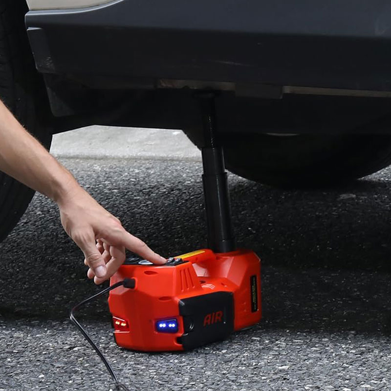 Ao contrário dos macacos de uso único, este kit integra elevação, inflação, remoção de porcas e iluminação – eliminando a necessidade de ferramentas separadas. A luz LED dianteira ilumina as áreas de trabalho, enquanto a luz intermitente traseira avisa o tráfego em sentido contrário.