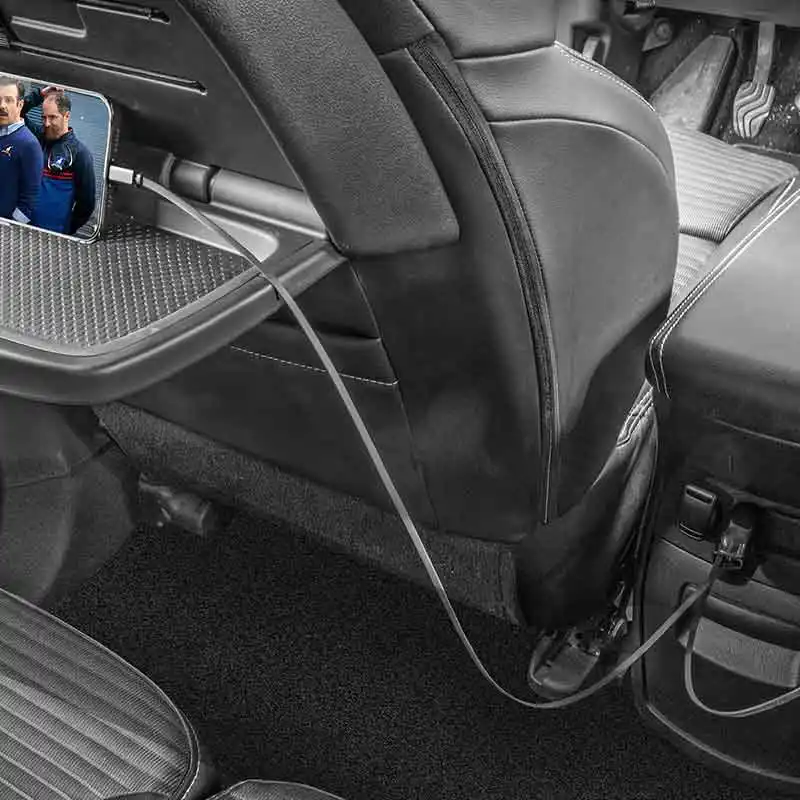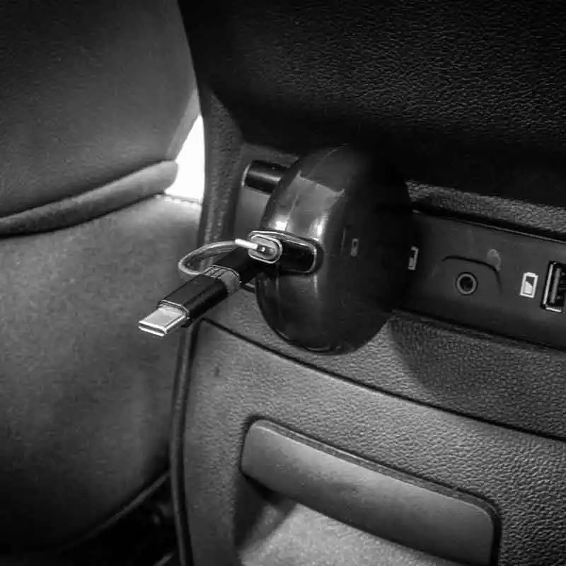 Um generoso cabo retrátil de 80 cm garante o uso conveniente do dispositivo, mesmo nos bancos traseiros da maioria dos veículos.
